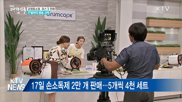 중기부가 이달 17일부터 공적 유통채널인 공영홈쇼핑을 통해 마스크 100만개 등의 판매에 나선다.(사진=KTV 화면 캡처)우선 17일에는 손소독제 2만개(5개·4000세트)를, 19일에는 마스크 15만개(40개·3750세트)를 판매한다.