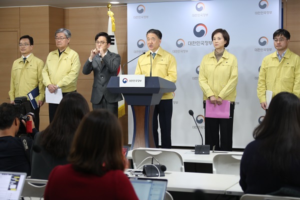 신종 코로나바이러스 감염증(코로나19) 중앙사고수습본부 본부장인 박능후 보건복지부 장관이 16일 오후 정부서울청사에서 중수본 회의 결과를 브리핑하고 있다.(사진=(c) 연합뉴스)박능후 코로나19 중앙사고수습본부장은 16일 브리핑에서 “오늘 국무총리 주관 하에 코로나19 중수본 제3차 확대회의를 개최해 지난 주간의 방역 강화 추진상황을 점검하고, 특히 학교 방역관리 대책 및 유학생 관리방안과 사업장 방역관리 대책 등을 논의했다”면서 “코로나19의 국내 유입을 막고 지역 전파를 차단하기 위해 최선의 노력을 다하고 있다”고 밝혔다.