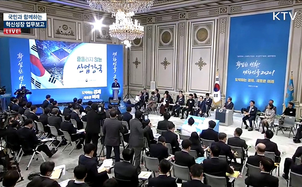 산업부는 17일 오후 청와대 영빈관에서 ‘흔들리지 않는 산업강국 실현’이라는 주제로 ▲소재부품장비 확실한 자립 실현 ▲신산업 ‘포스트 반도체’ 육성 ▲수소경제 글로벌 1등 국가 도약 ▲수출 플러스 전환 등 4개 핵심 주제에 따른 2020년 업무계획을 보고했다.