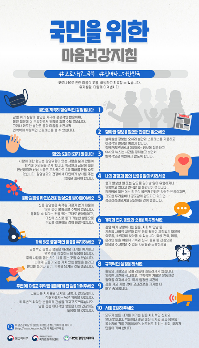 [일간환경연합 신상미 기자]국민을 위한 마음건강지침입니다.