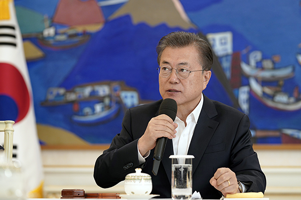 문 대통령은 이날 오전 청와대에서 주재한 ‘주요 경제주체 초청 원탁회의’ 모두발언을 통해 “정부는 ‘방역이 최선의 경제 대책’이라는 생각으로 감염병의 확산을 차단하고 경제를 지켜나가기 위해 전력을 다할 것이다. 그러나 정부의 힘만으론 부족하다”며 이같이 호소했다.