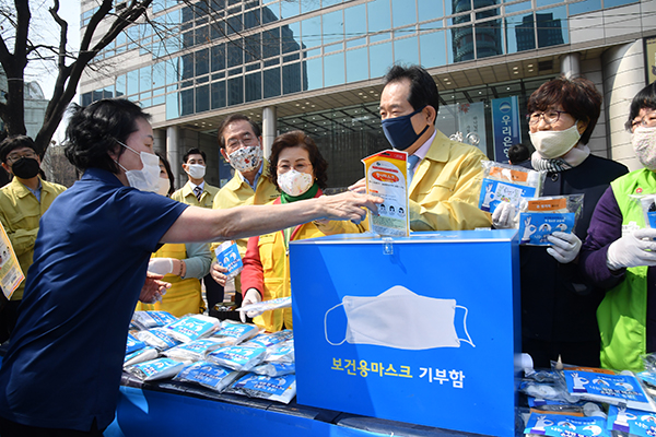 이어 정 총리는 서울 동화면세점 앞에서 진행 중인 마스크 기부나눔 캠페인인 ‘착한마스크 캠페인’ 현장을 찾아 시민들을 격려했다.
