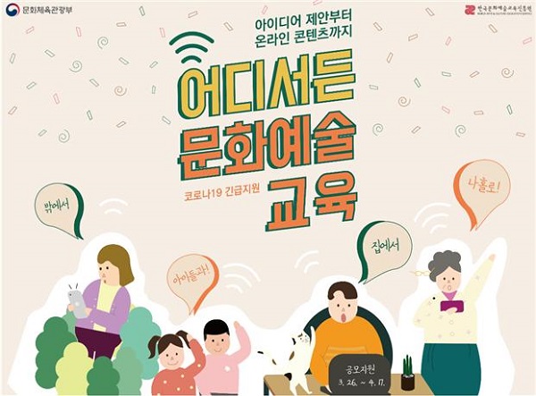[일간환경연합 김경훈 기자]문화체육관광부는 코로나19로 위축된 문화예술분야의 우수 콘텐츠를 온라인으로 즐길 수 있도록 ‘어디서든 문화예술교육’ 사업을 신규 추진한다.