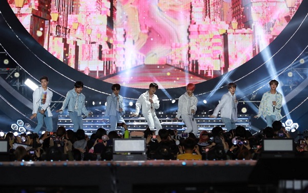 지난해 4월 28일 광주 서구 월드컵경기장에서 열린 2019광주FINA세계수영선수권대회 성공기원 슈퍼콘서트에서 그룹 방탄소년단이 공연을 펼치고 있다.(사진=광주세계수영대회 조직위원회)문화체육관광부는 2010년부터 2019년까지 ‘지식재산권 무역수지’ 자료를 종합적으로 분석한 결과, 우리나라의 저작권 무역수지는 지난 10년간 총 25억 달러(약 3조 원) 규모의 성장을 이뤄 왔으며, 2013년부터는 7년 연속으로 무역수지 흑자를 기록하고 있다고 밝혔다.