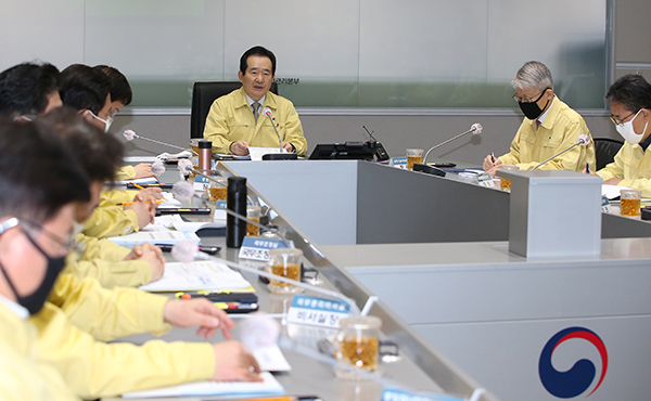 정세균 국무총리가 3일 정부서울청사에서 열린 중앙재난안전대책본부 회의를 주재하고 있다.하지만 정 총리는 “자가격리 의무화 이전에 입국한 사람들이 아직 사각지대로 남아있다”며 “그 사람들이 정부의 권고를 무시하고 지역사회와 접촉하지 않도록 지자체의 적극적인 대응이 필요하다”고 주문했다.