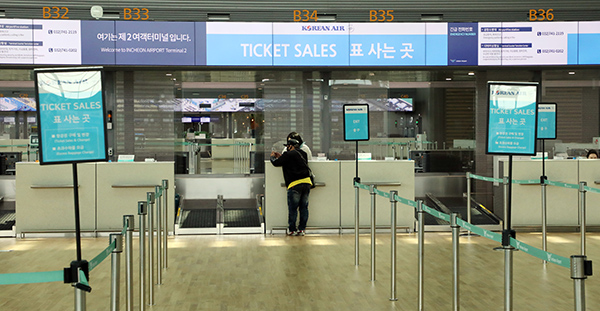 지난 7일 인천국제공항 출국장이 썰렁한 모습을 보이고 있다. (사진=(c) 연합뉴스)이번 조치에 따라 전세계 대사관, 총영사관 등 모든 한국 공관에서 지난 5일까지 외국인에게 발급한 단기사증(90일 이내 체류)의 효력이 잠정 정지된다.