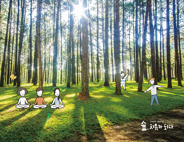 국립산림과학원의 연구에 따르면 30분간 숲길 2km를 걷는 것만으로도 경관, 햇빛, 피톤치드 등 다양한 숲의 치유 인자로 인해 긴장, 우울, 분노, 피로 등의 부정적 감정을 70% 이상 감소시킨다.