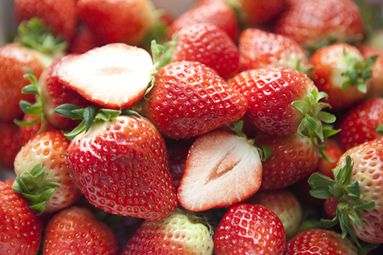 남녀노소 누구나 좋아하는 딸기는 주로 1~5월에 생산된다. 100g에 26kcal밖에 되지 않는 저열량 식품이라 다이어트에 효과적이다. 딸기 속 리코펜과 알라직산 성분은 면역력을 높이고 혈관을 튼튼하게 해 항암 효과가 있다. 식이섬유인 펙틴도 다량 함유해 혈중 콜레스테롤 수치를 낮춤으로써 성인병 예방에 도움을 준다. 딸기의 안토시아닌 성분과 비타민 C는 각각 시력 개선과 피부 미용에 효과가 있다.