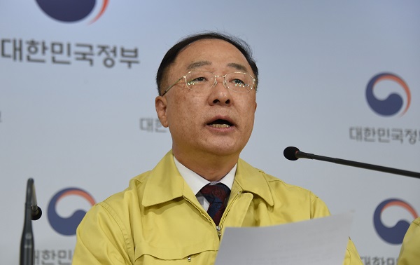 홍남기 부총리 겸 기획재정부 장관이 22일 서울 광화문 정부서울청사에서 열린 제5차 비상경제회의 결과 관계부처 합동브리핑에서 주요내용을 발표하고 있다. (사진=기획재정부)정부는 22일 문재인 대통령 주재로 열린 제5차 비상경제회의에서 이같은 내용이 담긴 ‘비상경제 중앙대책본부(경제 중대본)’ 운영 방안을 확정했다.