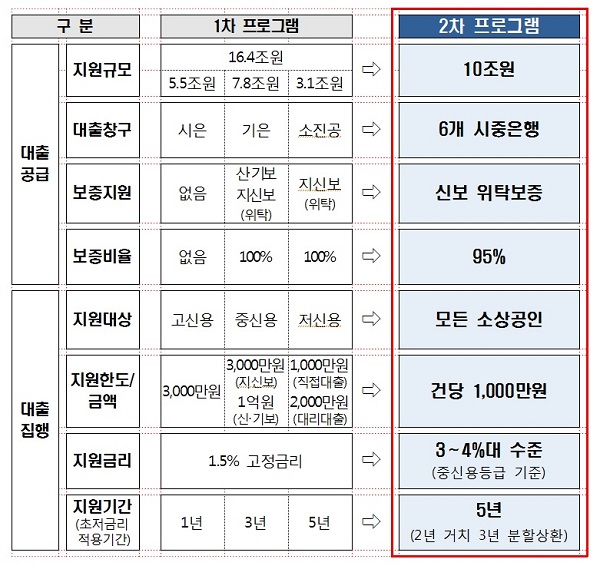 세부 지원구조홍 부총리는 모두발언을 통해 “코로나19 충격이 심리·실물·고용 측면에서 본격화하고 있다”며 “코로나19로 가장 큰 어려움을 겪고 있는 분들이 곧 소상공인으로, 10조원 규모의 2차 소상공인 금융지원 프로그램을 재설계 발표하게 됐다”고 설명했다.