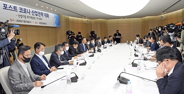 산업통상자원부는 6일 서울 중구 대한상공회의소에서 ‘포스트 코로나 산업전략 대화 및 산업·위기 대응반’ 1차 회의를 개최했다.