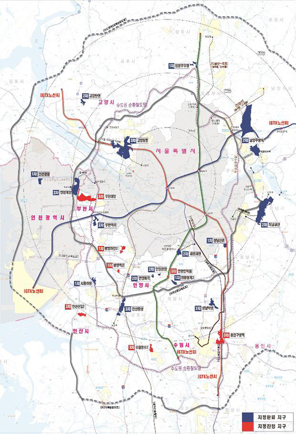 수도권 30만 가구 지구 위치도.기존 수도권 주택 공급 계획은 일정을 앞당긴다.