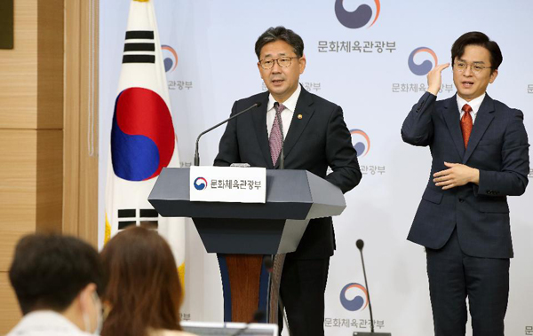 박양우 문화체육관광부 장관이 7일 서울 종로구 정부서울청사 별관 브리핑룸에서 ‘게임산업 진흥 종합계획’을 발표하고 있다.(사진=문화체육관광부 제공)문화체육관광부는 7일 정세균 국무총리 주재로 열린 국정현안점검조정회의에서 이 같은 내용을 포함한 ‘게임산업 진흥 종합계획’을 발표했다.