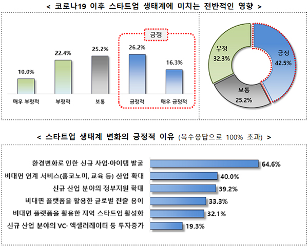 스타트업 생태계에 미치는 영향이 긍정적이라고 보는 기업의 64.6%는 환경 변화로 신규 사업·아이템 발굴이 가능해졌기 때문이라고 응답했다.