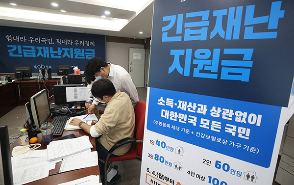 지난 12일 서울 성북구청에서 직원들이 긴급재난지원금 신청과 관련해 안내, 상담을 하고 있다. (사진=(c) 연합뉴스)3월 29일 이후 정확히 언제까지 이사가 인정되는지는 추후 안내할 예정이다.