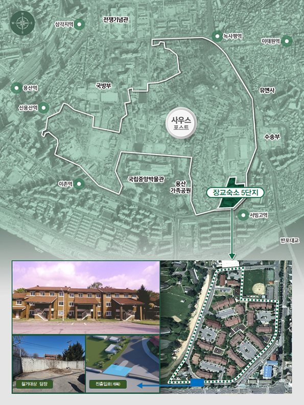 정부는 미군 장교숙소 5단지 일부 건물을 전시관과 방문객 휴식공간, 회의장 등으로 개보수할 예정이다. 이번 담장 일부 철거는 공사 차량 출입 등을 위한 조치다.