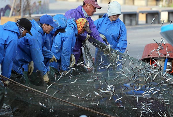 부산 기장군 기장읍 대변항에서 어민들이 구성진 노랫가락에 맞춰 그물에 걸린 멸치를 털고 있다. (사진=(c) 연합뉴스,)수산분야 공익직불제도는 수산업·어촌분야의 공익기능을 강화하기 위해 어업인에게 일정한 의무를 부여하고 이를 준수하면 직불금을 지급하는 제도다. 오는 2021년 3월 1일부터 시행된다.