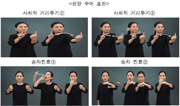 ‘사회적 거리두기’와 ‘승차 진료’의 수어 권장안은 각각 두 개씩 선정됐다.