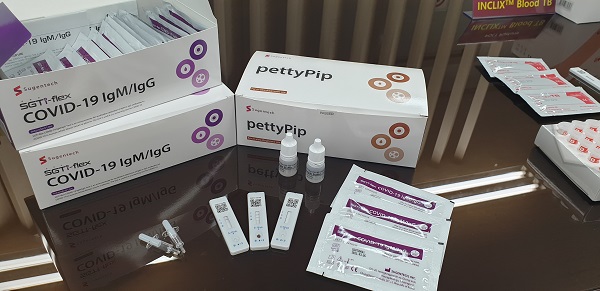 수젠텍이 개발한 ‘SGTi-flex COVID-19 IgM/IgG’ 진단키트는 2개 항체(lgG, lgM)를 동시에 진단하는 방식으로, 피 한 방울로 10~15분이면 진단이 끝나고, 분자진단방식처럼 고가의 진단장비나 숙련된 검사인원도 필요하지 않다.