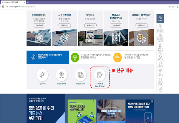 K-Startup 웹 PC버전.서비스는 그동안 총 5회에 걸쳐 스타트업 생태계의 핵심 이슈와 메가트렌드를 심층 분석해 읽고 이해하기 쉬운 카드뉴스 형태로 제공해 중기부와 창진원 직원들에게 호평을 받아왔다.