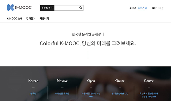 구연희 교육부 평생미래교육국장은 “포스트 코로나 시대에 대비해 인공지능에 기반한 맞춤형 학습지원이 가능하도록 케이무크 플랫폼을 고도화했다”며 “지속적으로 강좌의 양적 확대뿐 아니라 다양한 주제와 형태의 명품강좌를 개발해 제공할 계획이다”고 밝혔다.