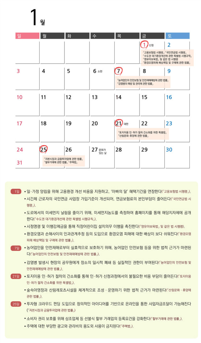 [일간환경연합 신상미 기자]1월에 새로 시행되는 법령을 알려 드립니다.