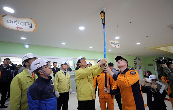 지난해 국가안전대진단 마지막 날인 4월 19일에 진영 행정안전부 장관이 대전 서구의 한 대형 건설 현장 바로 옆에 있는 어린이집을 찾아 건물 안전을 살펴보고 있다. (사진=(c) 연합뉴스)국가안전대진단은 세월호 참사 후 우리 사회의 안전관리 실태를 점검하고 국민 안전의식을 개선하고자 지난 2015년에 처음 도입되었다.