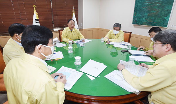 홍남기 부총리 겸 기획재정부 장관이 10일 서울 광화문 정부서울청사에서 5월 고용동향을 주요내용으로 관계장관회의(녹실회의)를 주재하고 있다. (사진=기획재정부)참석자들은 전년동월대비 고용 감소가 세 달 연속 지속되고 있다는 점을 우려하면서도 서비스업 일자리 중심으로 감소세가 완화되는 등 경제활동과 일자리 상황이 회복 조짐을 보이기 시작하고 있다는 점을 다행스럽게 평가했다고 기재부는 전했다.