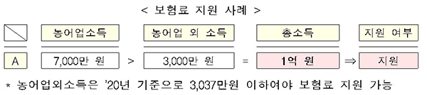 이러한 해당 소득·재산 기준은 농지·선박 등이 생산 수단인 점과 코로나19로 인해 경제적으로 어려운 상황 등을 고려해 정했고, 이에 따라 농어업인 중 이 기준 금액에 해당하는 자는 오는 7월부터 국민연금보험료 지원을 받지 못한다.