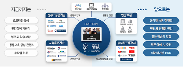 국가 인재개발 지능형 오픈 플랫폼 개념도.그동안 공무원교육은 학교교육과 같이 코로나19로 많은 집합교육이 중단되면서 비대면 교육 인프라의 중요성이 크게 부각되었다.
