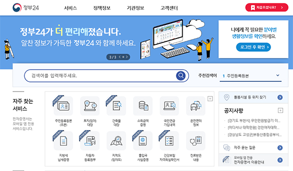 [일간환경연합 한선미 기자]정부대표 포털 ‘정부24’(http://www.gov.kr)가 생활밀착 서비스를 대폭 확대해 19일부터 공식 제공한다.