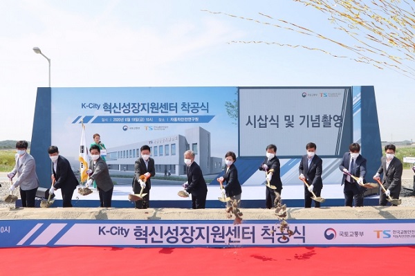 국토교통부는 19일 경기도 화성 ‘케이-시티(K-City)’에서 혁신성장지원센터 착공식 및 임시운행허가 자율주행차 100대 달성을 기념하는 기업 간담회를 개최했다고 밝혔다.