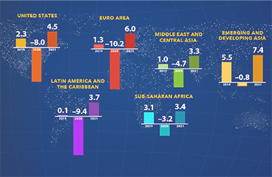 주요국의 올해 성장률 전망치를 보면 미국(-8.0%), 일본(-5.8%), 영국(-10.2%), 독일(-7.8%), 프랑스(-12.5%), 중국(1.0%), 인도(-4.5%) 등이다.