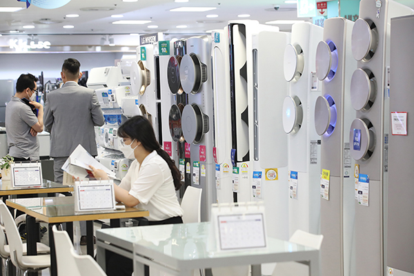 서울의 한 에어컨 매장을 찾은 고객들. (사진=(c) 연합뉴스)피크시기 전력공급능력은 여름철 수급대책기간 역대 최고수준인 1억19만kW를 확보했다.