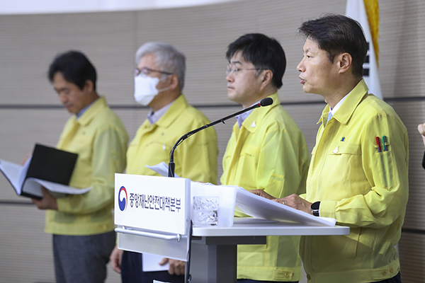 김강립 중앙재난안전대책본부 제1총괄조정관(보건복지부 차관)이 중앙재난안전대책본부 정례브리핑을 하고 있다. (사진=보건복지부 제공)한편 이날 중대본 정례브리핑에서는 국민 생활과 밀접한 생활영역에 대한 생활 속 거리두기 세부지침 추가 개정을 발표했다.