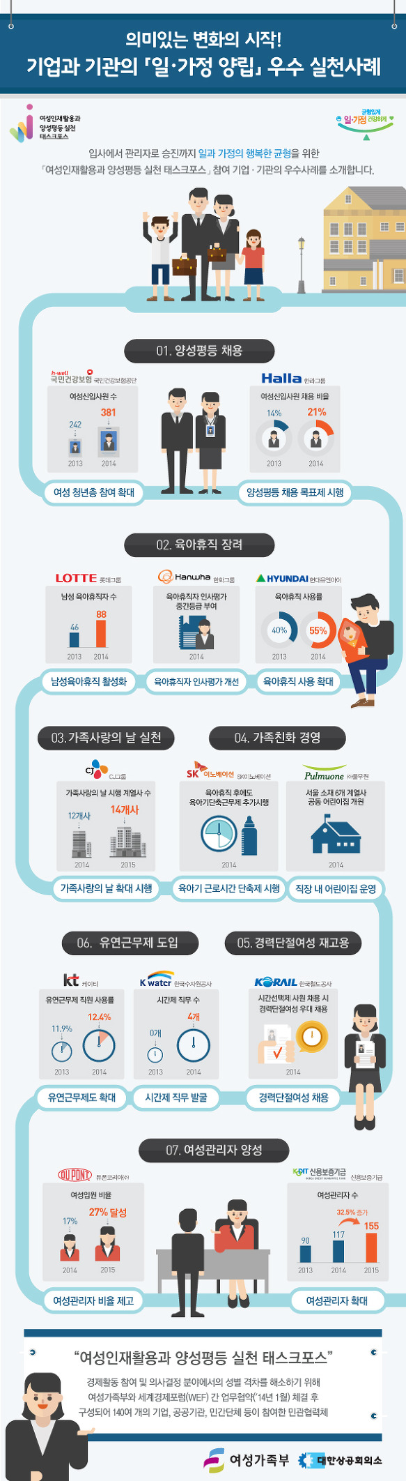 [일간환경연합 장민주 기자]일 가정 양립 우수 실천사례를 그래픽을 통하여 한눈에 확인 할수있습니다