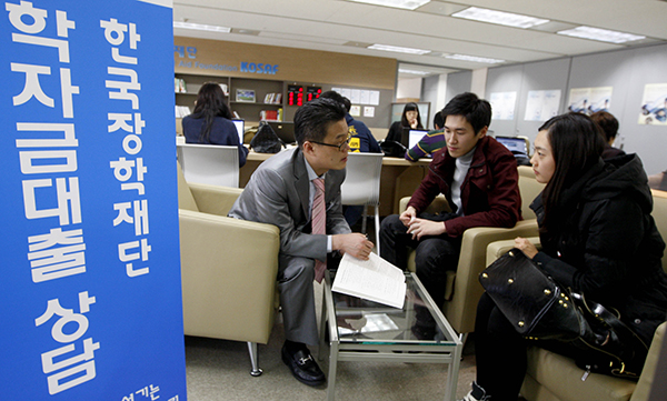 취업 후 학자금상환 대출신청이 시작된 지난 1월 서울 한국장학재단을 찾은 신입생과 재학생들이 학자금 대출을 상담하고 있다. (사진=(c) 연합뉴스)한편 2020년 2학기부터는 일반상환 학자금대출의 지연배상금률도 2020년 1학기(4.5%) 대비 0.65%p 인하한 3.85%가 적용된다.