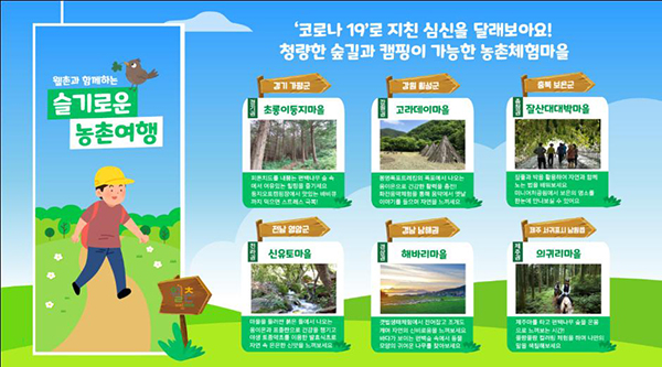 [일간환경연합 장민주 기자]농림축산식품부와 한국농어촌공사는 코로나19로 지친 심신을 달래고 힐링하기 좋은 ‘농촌체험휴양마을’ 6곳을 13일 선정·발표했다.