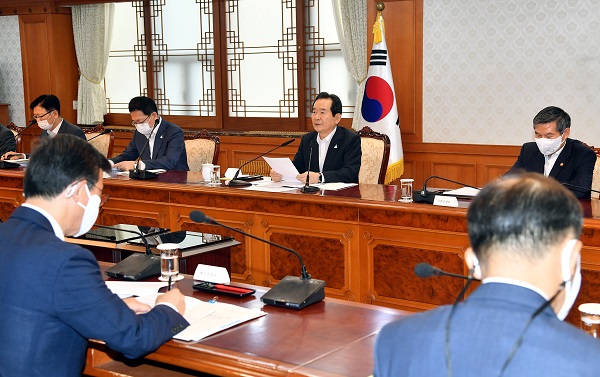 정세균 국무총리가 20일 정부서울청사에서 열린 서해5도 지원위원회를 주재하며 발언하고 있다.서해5도 종합발전계획은 2010년 북한의 연평도 포격 도발을 계기로 백령도 등 최북단 서해 5도 주민들을 지원하기 위해 마련된 것으로, 2011년부터 10년간 모두 9109억원(민간자본 포함)을 투입해 주거환경 개선 등 78개 사업을 추진하는 내용이다.