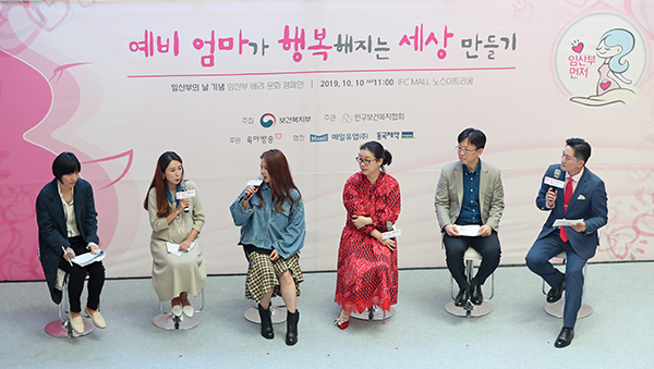 지난해 10월 10일 보건복지부 주최로 열린 ‘임산부의 날’ 행사에서 참가 패널들이 임산부 배려를 주제로 한 토크버스킹을 하고 있다. (사진=저작권자(c) 연합뉴스, 무단 전재-재배포 금지)시범사업의 서비스 신청은 임산부가 시범 보건소에 방문하면 우울·불안, 흡연·음주 등 건강위험요인과 사회적요인 등에 대해 평가를 하는데, 전화로 신청한 경우에는 출산 이후 방문 시에 평가가 이루어진다.