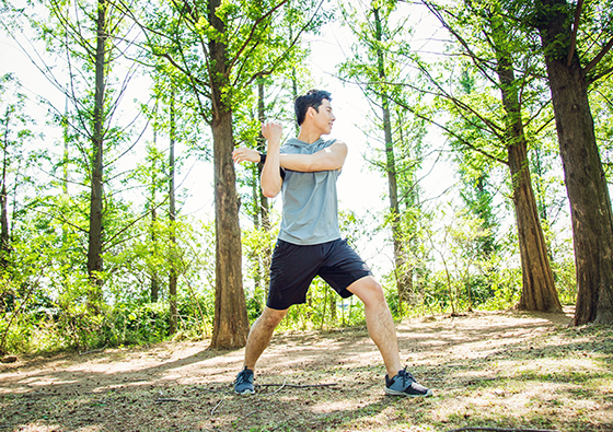이럴 경우 근육이 쉽게 피로해지고 지치게 되니 통풍이 잘되고 열과 땀을 잘 흡수하고 배출하는 기능성 운동복을 입는 것이 좋다.
