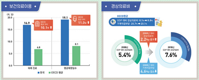 또 우리나라는 OECD 국가 중에서 국민 1인당 외래 진료 횟수(연간 16.9회)가 가장 많았다.