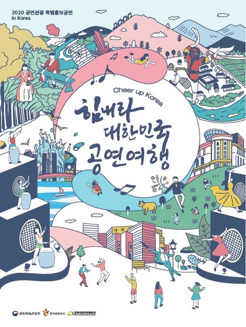 공연관광 특별홍보 행사 포스터.문화체육관광부가 후원하고 한국관광공사와 한국공연관광협회가 주최하는 ‘힘내라 대한민국!, 공연여행’ 행사가 내달부터 10월까지 서울, 부산, 안동, 강릉, 목포, 전주, 대구, 광주, 인천 등 10여 개 지자체 주요 교통·관광 근거지에서 열린다고 29일 밝혔다.