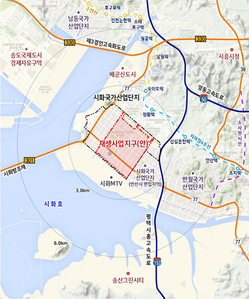 시화 국가산단 재생사업 위치도.아울러 올해 산업단지 지정계획 변경안은 기존계획에 6개가 추가됐다. 경북 경주시 혁신원자력연구단지, 외동3·4일반산단 등 3곳, 충남 천안시 제6일반산단 1곳, 전남 영광군 대마전기자동차 일반산단 1곳, 경기 용인시 원삼일반산단 1곳 등이다.