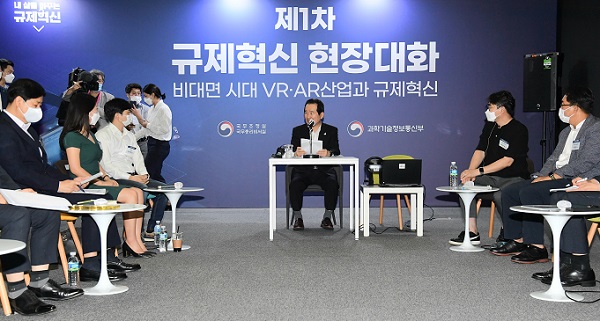 이번 현장대화 행사는 논의 주제를 감안해 최근 비대면 회의 수단으로 새롭게 주목 받고 있는 가상현실(VR) 회의를 정부 회의에서는 처음으로 접목해 진행됐다.