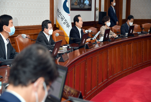 정세균 국무총리가 4일 정부서울청사에서 열린 국무회의를 주재하고 있다.이어 정 총리는 부동산 문제와 관련, “지금 가장 중요한 민생현안은 주택시장 안정”이라며 “그간 정부의 노력에도 불구하고 시장 불안이 해소되지 않아 국민들께 송구한 마음”이라고 밝혔다.