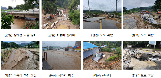 집중호우 특별재난지역 주요 피해 사진.아울러, 이번 ‘우선 특별재난지역’에 포함되지 않은 피해지역에 대해서는 신속히 피해조사를 실시, 대상이 되는 경우 추가로 선포할 계획이다.