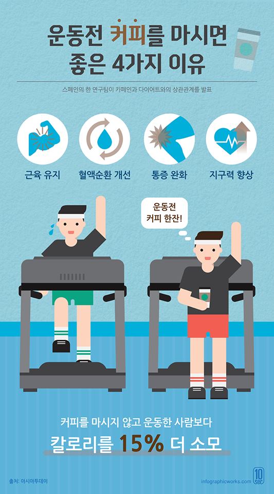 특히 운동전 커피 한 잔은 운동능력에 긍정적 효과를 주니 참조해보면 좋을 것 같습니다.