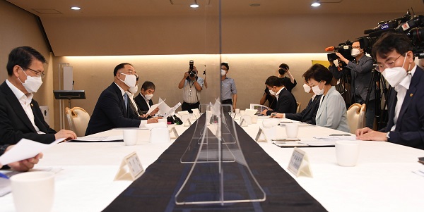 부동산정책 후속조치 진행상황 점검 및 계획과 관련해서 홍 부총리는 “8·4대책을 통해 사전청약 물량을 당초 9000 가구에서 6만 가구(2021년 3만 가구, 2022년 3만 가구)로 대폭 확대하기로 발표했다”며 “하루라도 빨리 실수요자 분들이 주택공급 확대를 체감하고 주거 계획을 세우실 수 있도록 태릉CC를 포함한 2021년 사전분양 3만 가구의 분양 대상지와 분양 일정을 다음주 관계장관회의에서 확정해 알려드릴 계획”이라고 밝혔다.