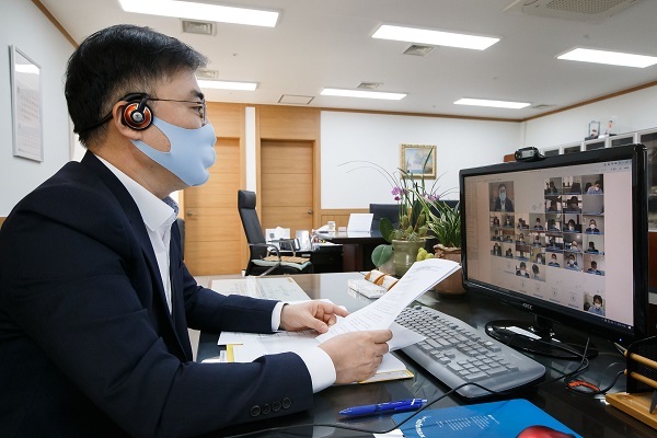 손병두 금융위 부위원장이 8일 서울 종로구 정부서울청사에서 금융리스크 대응반 회의를 비대면 화상회의로 진행하고 있다. (사진=금융위원회)금융위는 또 코로나19 여파로 가계 신용대출이 큰 폭으로 증가한 것과 관련해 선제적으로 관리하겠다고 강조했다.